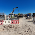Continúan los trabajos el sector de Dupont (Km 104) donde se halla el Parque Industrial a la salida de Calama. Se construyen pilares para el
