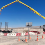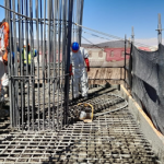 Continúan los trabajos de construcción en el Acceso Sur a Sierra Gorda. Se trabaja en Trabajo con fierros y hormigón que construyen los pilares para