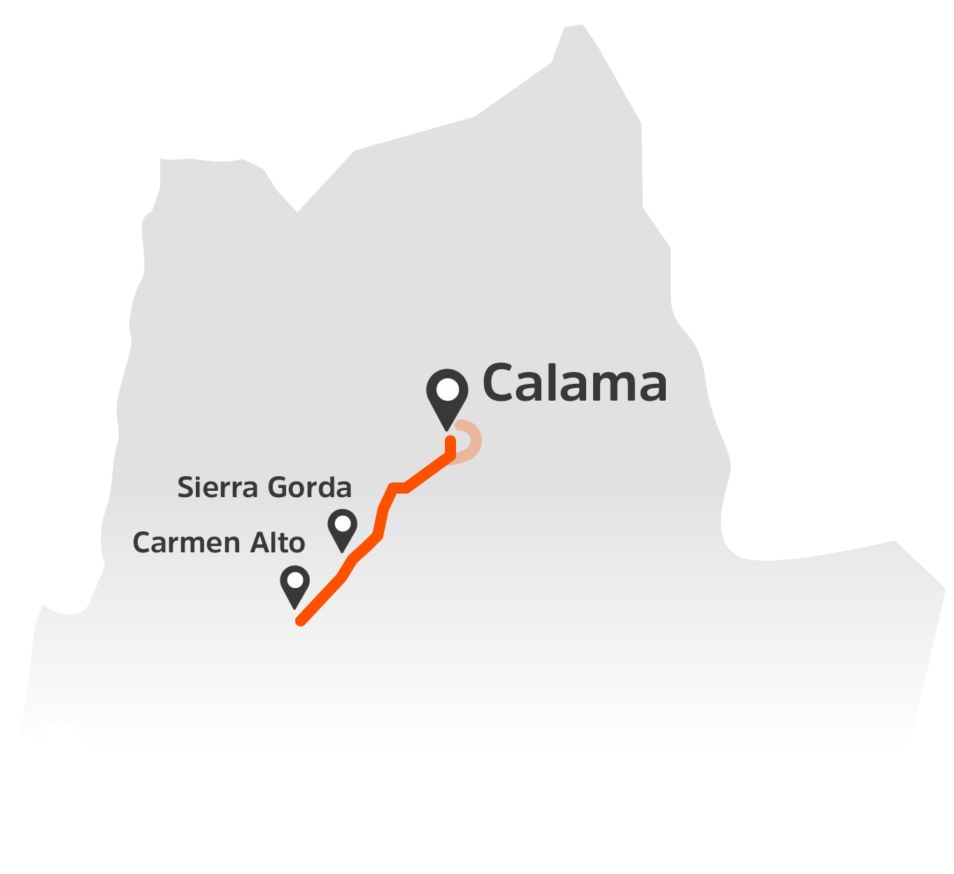 La conexión entre Carmen Alto, Sierra Gorda y Calama, con 136 kilómetros en total, provee de una mejor experiencia de viaje y seguridad vial a los habitantes en la Región de Antofagasta y entrega beneficios a toda la comunidad, entre los que destacan: