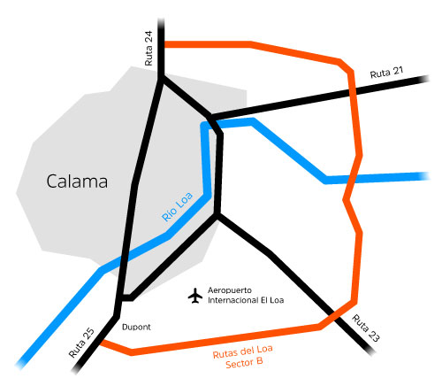 - Nueva conexión entre el norte de Calama y la Ruta 25, por Circunvalación, evitando el tránsito por el interior de la ciudad.